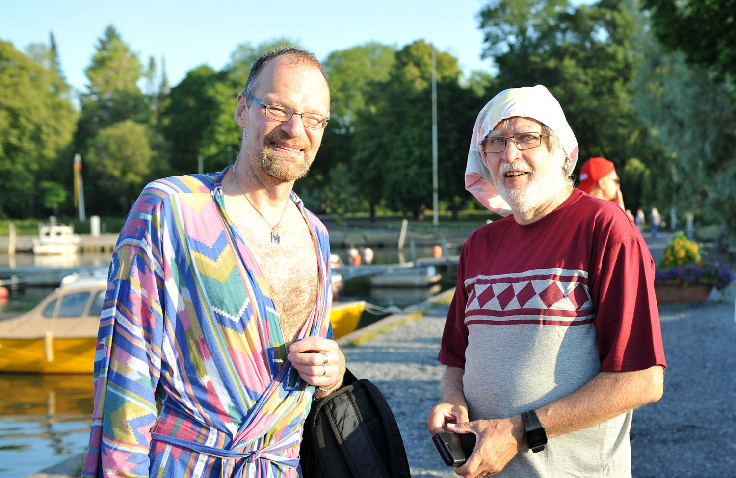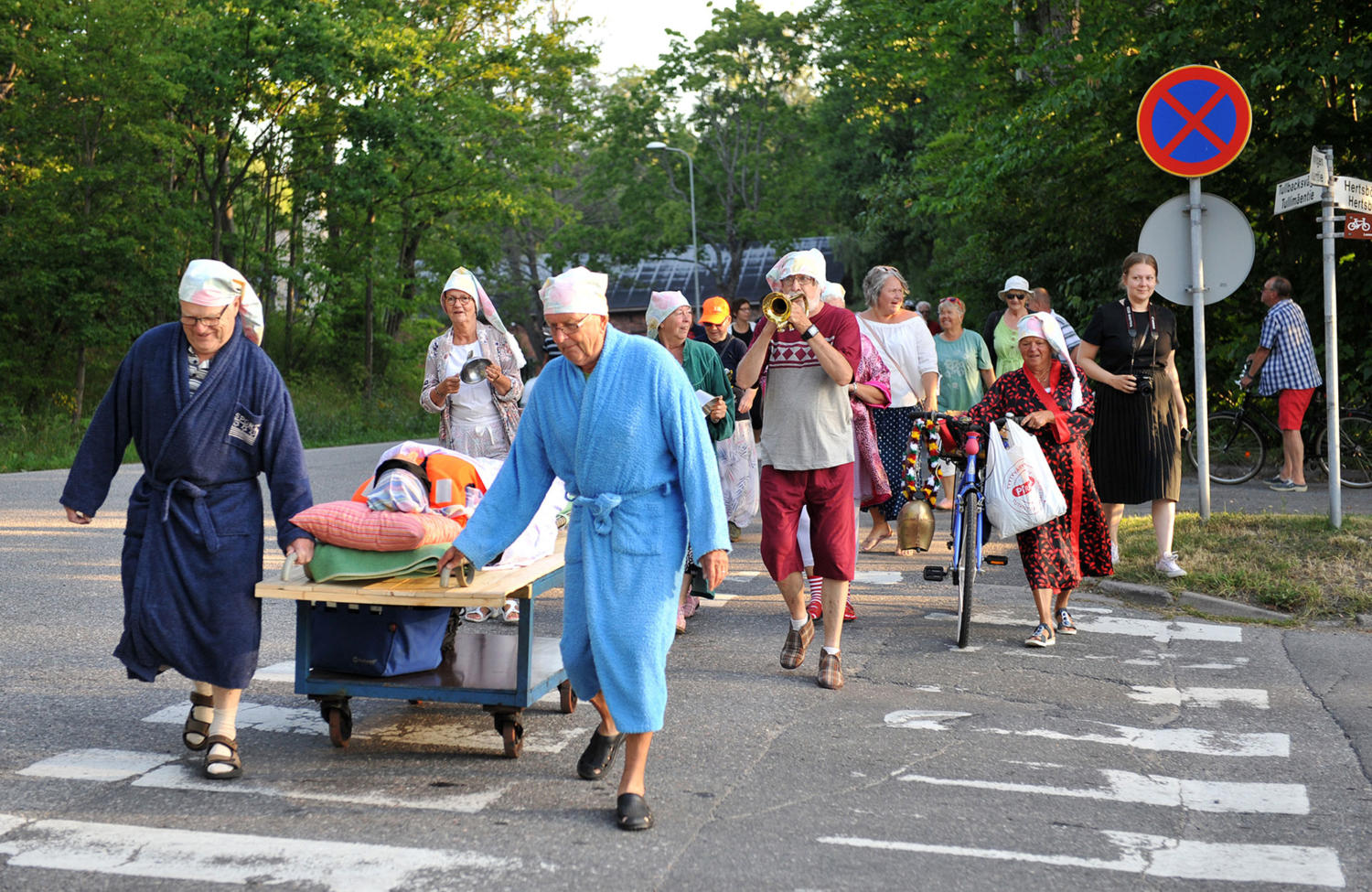 Sjusovartåget startade från masugnen kvart före sju på morgonen. Sjusovaren var väl dold under lakan och iklädd en ansiktsmask för att inte röja hans identitet. Han skjutsades på en verktygskärra från fabriken till kornettmusik och skrammel från sjusovarföljets instrument. Många i följet var iklädda nattdräkt och mössa. Vid hamnen väntade ytterligare en skara människor som ville se Dalsbruks första sjusovare få sig ett dopp i vattnet. Dalsbruks byalags ordförande, Leif Lindgren, tog till orda och klockan sju, till ljudet av den gamla fabriksvisslan, åkte sedan sjusovaren Ginlund ner i vattnet med huvudet före. Först då han tog av sig ansiktsmasken, kunde publiken på över hundra personer, se vem han var. Sjöräddarna fanns på plats och kunde rädda den glada sjusovaren upp i båten igen.