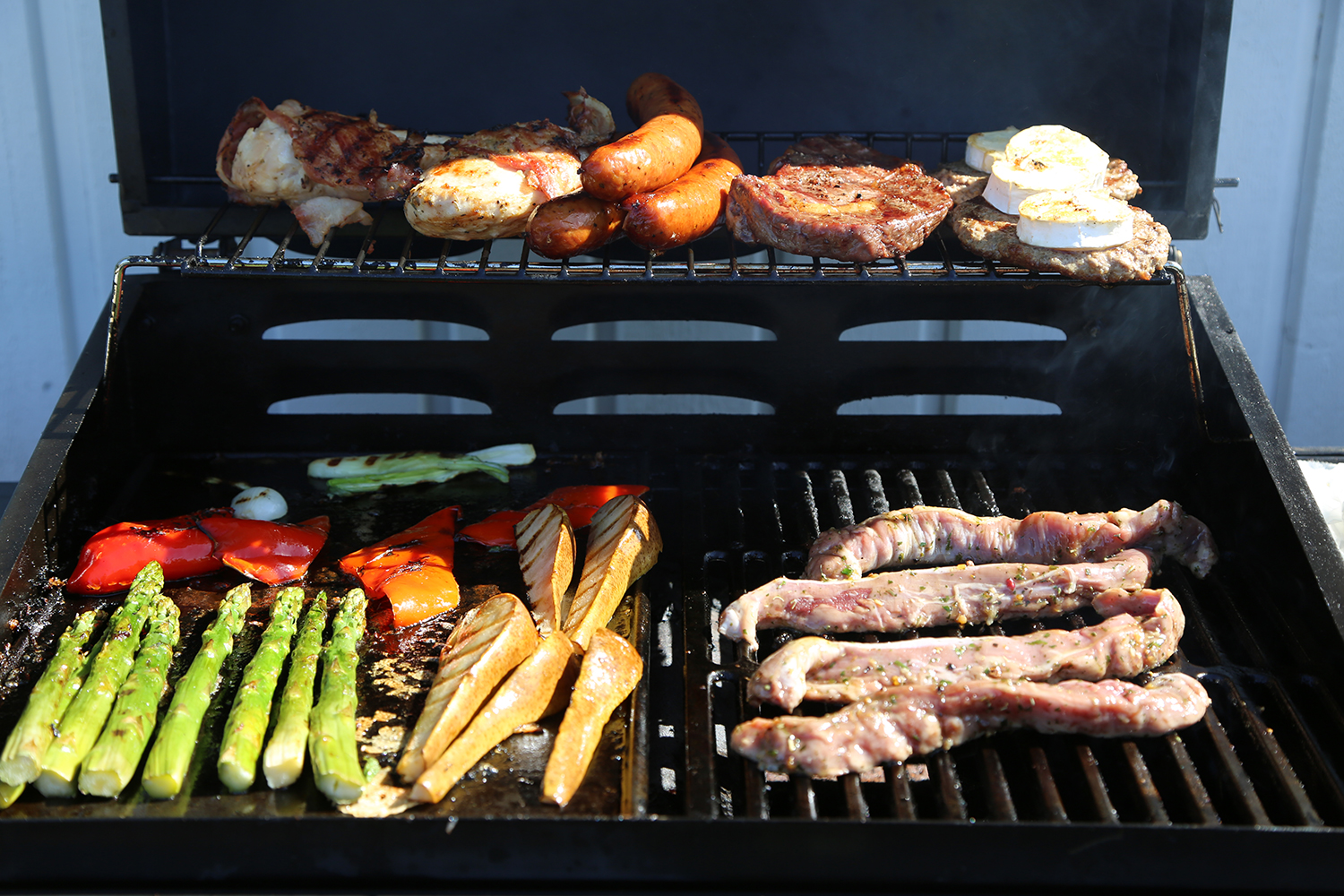 - Idag bereder jag traditionell grillad entrecôte i vitlökssmör, senapsmarinerad broilerfilé inlindad i bacon, svagt rökt till abborsläktet tillhörande strimmig havsabborre, lamburgare gjord av lamm från Westankärr samt lamminnerfilé, som är en riktig snabbrätt inom grillning, då det är färdigt på ett par minuter. Utöver kött grillar jag även paprika, sparris, salladslök och päron. Till min grillbuffé hör också potatis, coleslaw-sallad, tsatsiki och BBQ-majonnäs. Sedan får man ju inte glömma korv, som alltid skall vara med då man grillar!
