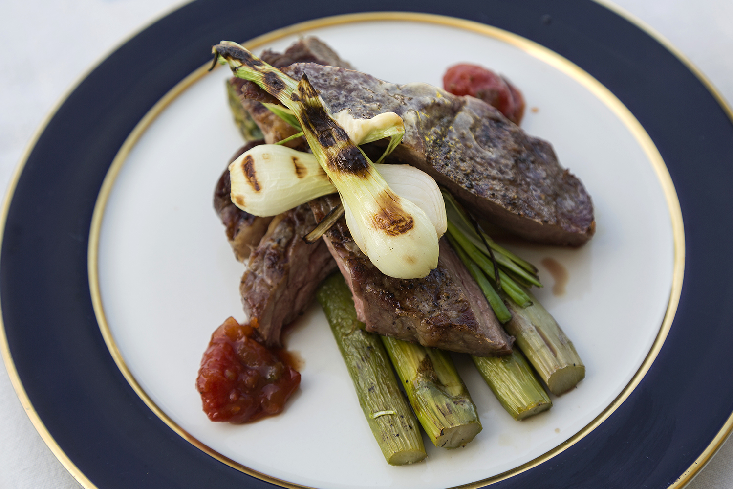 - Tänään valmistan perinteistä grillattua entrecôtea valkosipulivoilla, pekoniin käärittyä sinappimarinoitua broilerinfileetä, miedosti savustettua ahvenkalojen lahkoon kuuluvaa juovabassia, lamburgereita Westankärrin karitsasta, sekä karitsan sisäfileetä, joka on oikeata grillauksen pikaruokaa, sillä se valmistuu parissa minuutissa. Lihan lisäksi grillaan myös paprikaa, parsaa, kevätsipulia ja päärynää. Grillibuffettiini kuuluu myös uusia perunoita, coleslaw-salaattia, tsatsikia ja BBQ-majoneesia. Eikä sovi unohtaa makkaraa, sitä täytyy olla aina mukana grillatessa!