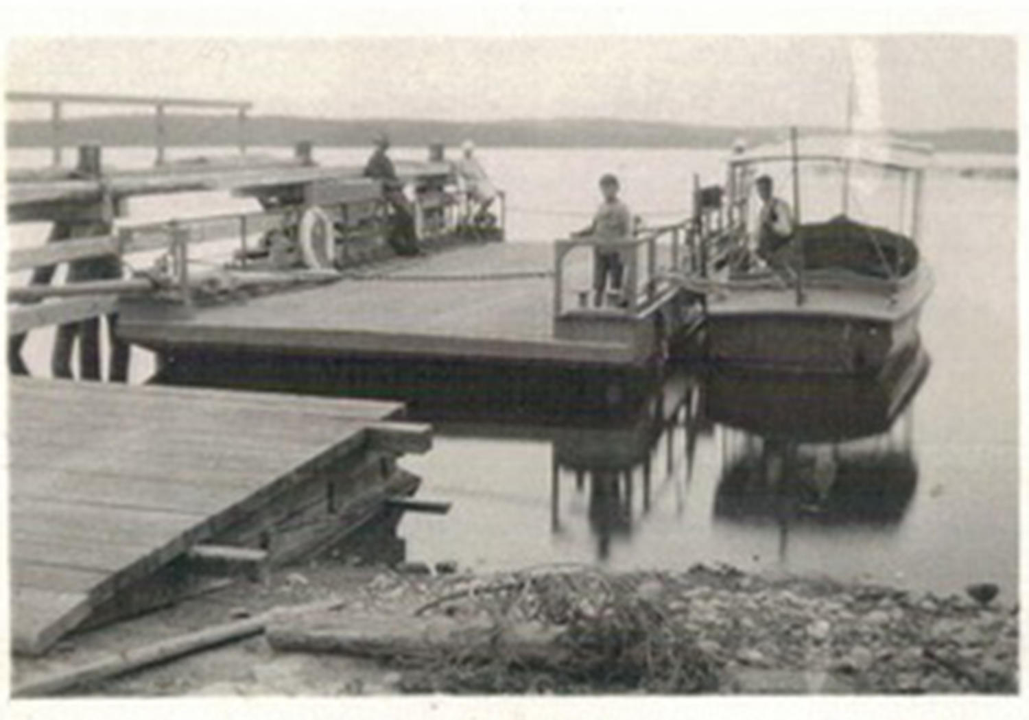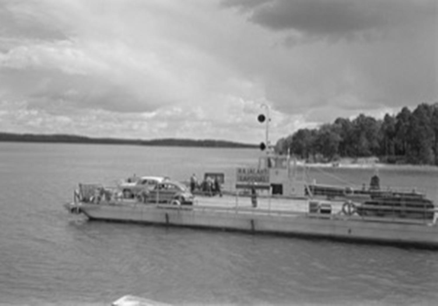 Kalevi Kallonen från Degerdal berättar att färjan var ganska liten; den tog en buss eller fyra små bilar. Han själv åkte till skolan i Sagu så färjan var mycket välbekant. Den hade kättingar fram- och baktill och motorn var en Fordson Major. Färjan var av trä och den hade pontoner. På den tiden var färjkarlarna ganska mäktiga herrar.