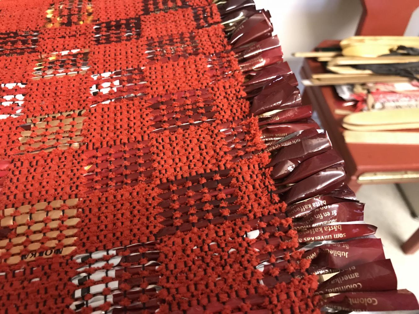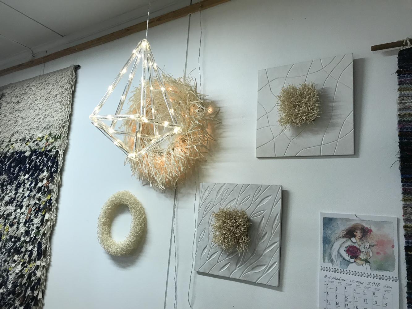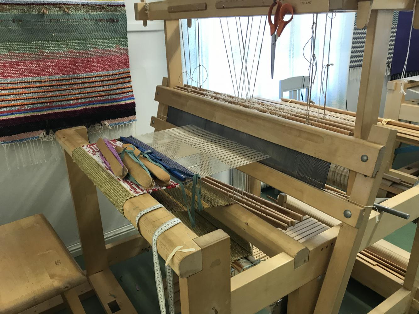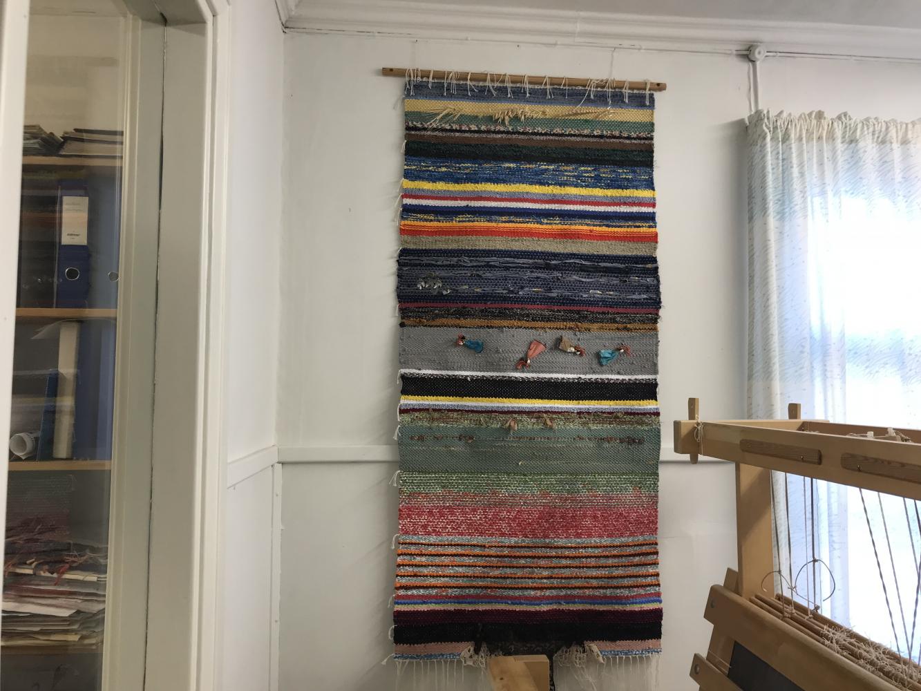 The weaving school “Åbolands hantverk rf” is in Kimito. You can make many variety of handicrafts here. For example, a rug, a table cloth and so on. A lot of good looking items are displayed. Surprisingly, some items are made by old clothes or old books. It seemed difficult to weave a rug at first, but I was able to weaving easily than I had expected. Also, as everyone said, they get along well. A cozy atmosphere makes you feel at home. So, if you want to begin something new, this is recommended. The teacher Ms.Wallenius said “I think it is better to make what I want myself. It is good hobby.” That is true because it is interesting to make original items.